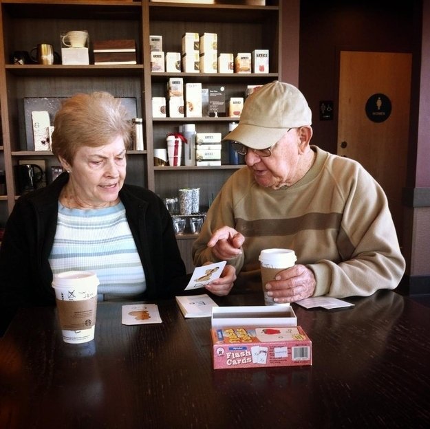 14. Az idős úr, aki párját tanítja a betűk olvasására, miután a hölgy elvesztette emlékezetét és minden tanult tudását: türelem, szeretet és megértés a legmagasabb szinten.