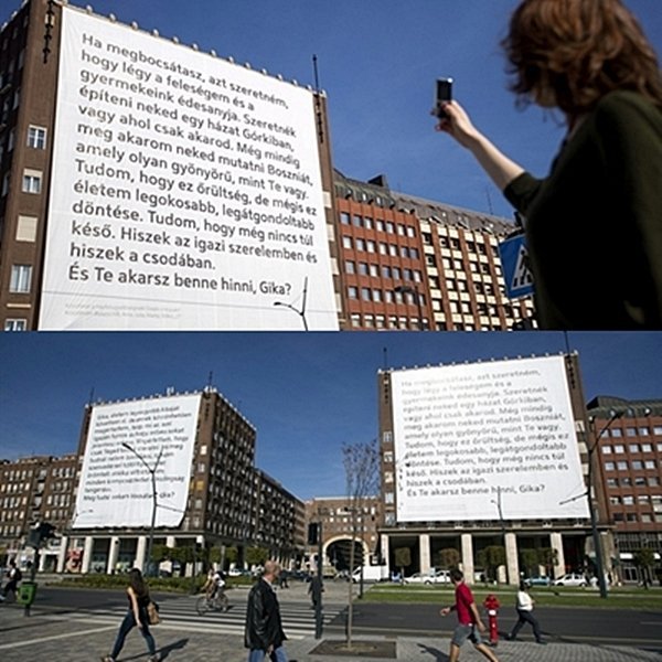 17. A Madách téri szerelmes molinók: Két óriási molinón kért bocsánatot szerelmétől egy lengyel férfi. Egyúttal a kezét is megkérte.