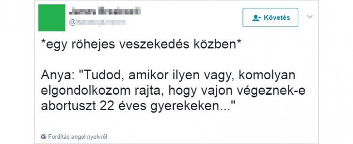 Az biztos, hogy minden együttélés termeli a feszültségeket, aminek időnként véget kell vetni valamilyen módon. Erre az anyák egyik hatásos fegyvere, az egy-két, övön alul beszúrt mondat.