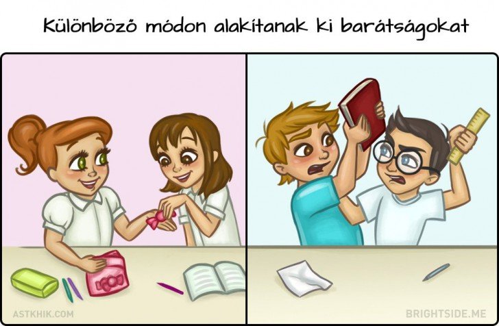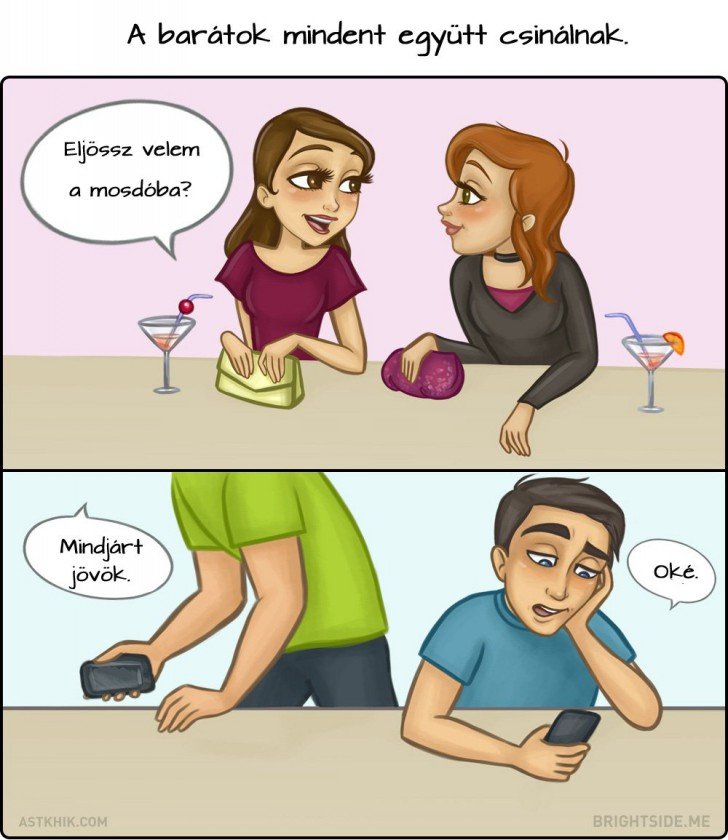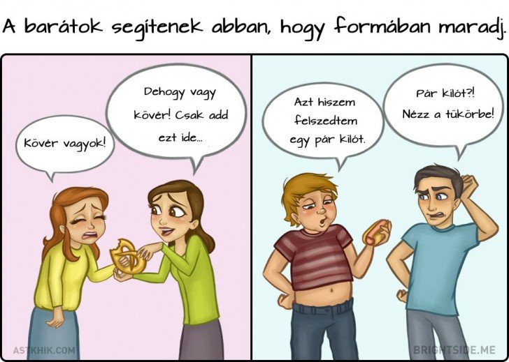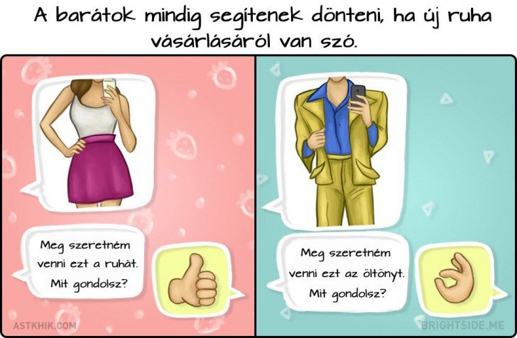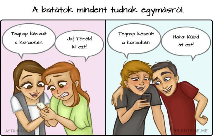 Mert ugye még véletlenül sem hasonló ahogyan a barátnők és ahogyan a barátok viszonyulnak egymáshoz. A nők sokkal kíméletesebben, konfliktus kerülőbben igyekeznek megoldani a problémákat, simogatják egymás lelkét egy szerelmi csalódásnál, és igyekeznek diplomatikusan kezelni azt is, amikor barátnőjük a külseje miatt drámázik.