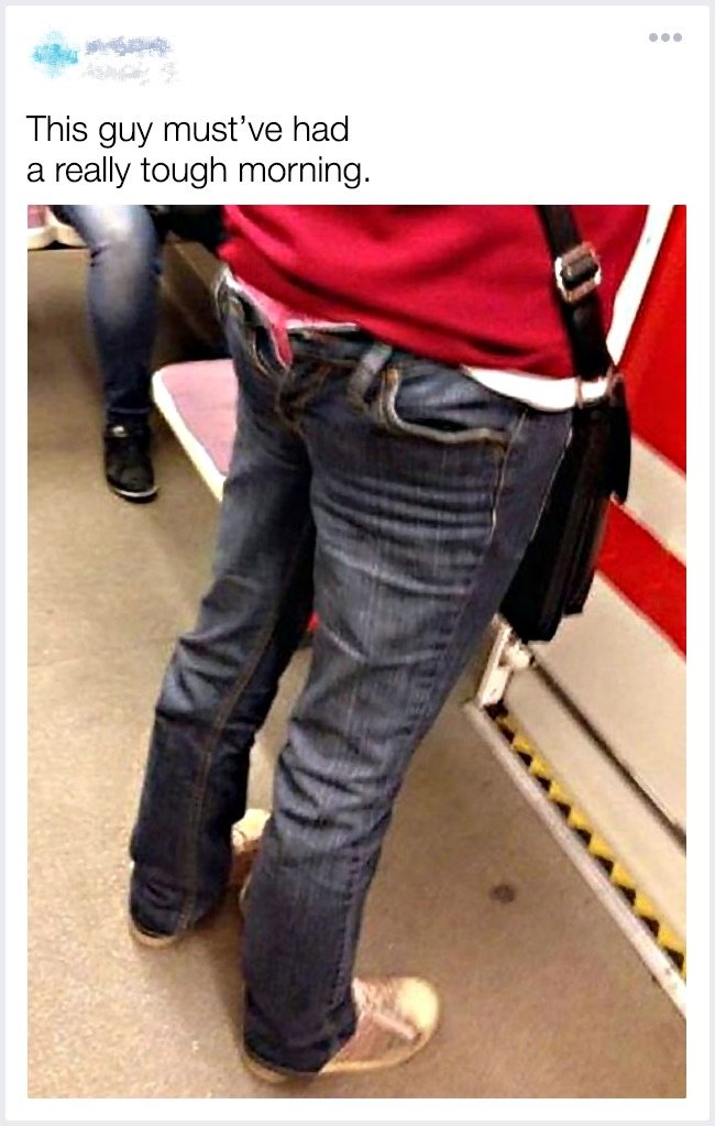 10. Alsógatyát a farmerre? Lehetne divatteremtő, megvadult stylelist agyszüleménye, de egy hétfő reggeli pali is lehet így szétcsúszva. Ebből is tudható, hogy a kettő egyáltalán nincs messze egymástól. Tudod, mint a zseni és őrült…