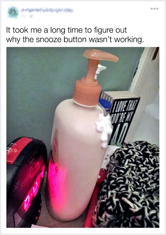 8. “Sok időnek kellett eltelnie mire rájöttem miért nem működik a ‘szundi’ gomb.”