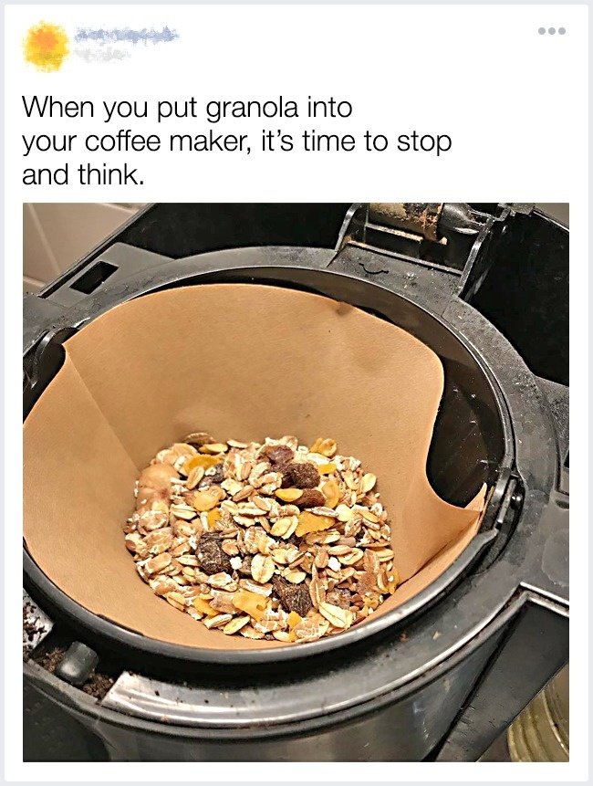 9. “Amikor beszórod a granolát a kávéfőzőbe, eljött az idő, hogy megállj és gondolkodj.”