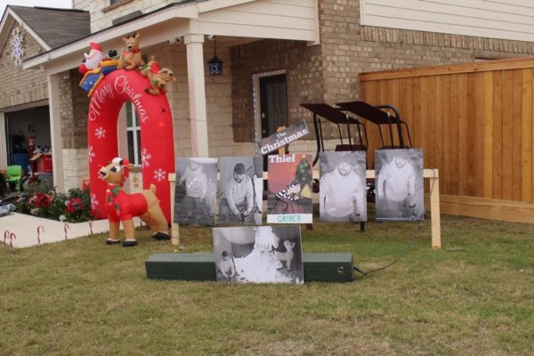 5. Ellopták a szomszédom karácsonyi rénszarvas dekorációját tavaly. Idén kiplakátolta a fotókat is mellé arról, akit a kamerája rögzített. Gondosan feliratozta : Grinch, aki ellopta a karácsonyt.