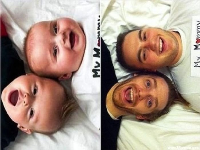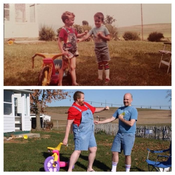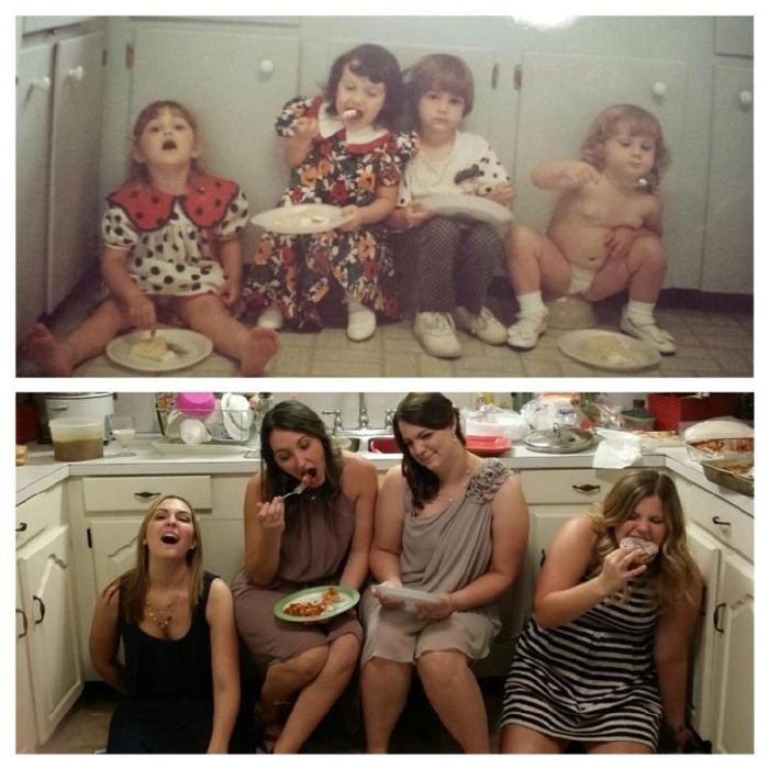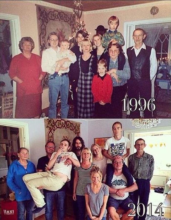 4. Az első közös fotó, és 20 évvel később, 2 gyerekkel kiegészülve