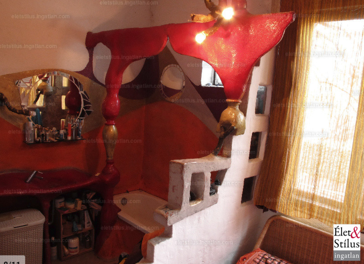 Karcsi a burkolás megszállottja. Gondolt egy merészet és dobott egy hirdetést: “felújításhoz bármilyen csempét átveszek!”. Majd az érkező darabokat eklektikusan hordta fel, hol diagonálban, hol síkban, mikor milyen volt az életérzés.