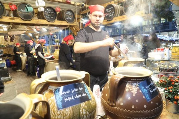 Czakó Norbert (37) 950 forintért méri a pohár forralt bort /Fotó: Isza Ferenc