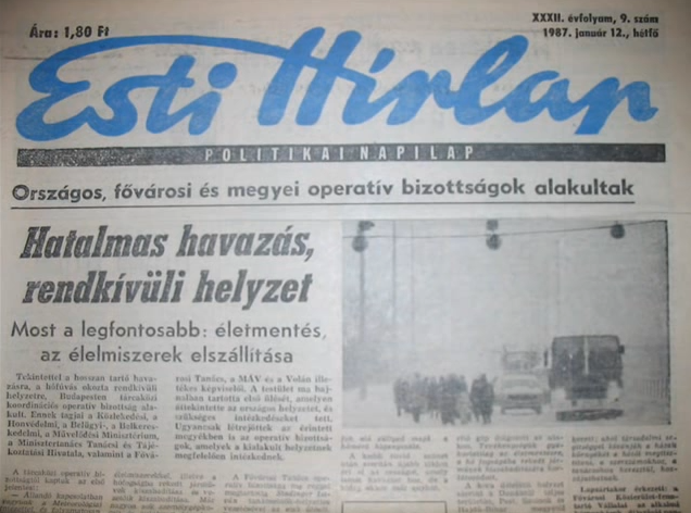 Esti Hírlap, 1987. január 14., szerda, 1. oldal – Forrás: OSZK